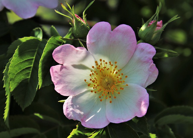 There are native wildflowers, like the prairie lily, crocus, scarlet mallow and wild rose pictured below. You have to look for them, though; because of the climate many grow close to the ground or only in sheltered areas.